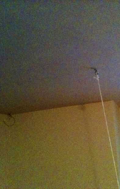 Utilizando la longitud de su panel de madera como guía, enroscar los tornillos en el techo en ambos lados opuestos. (Como se muestra en la foto hice mi primera marca al final de la pared).