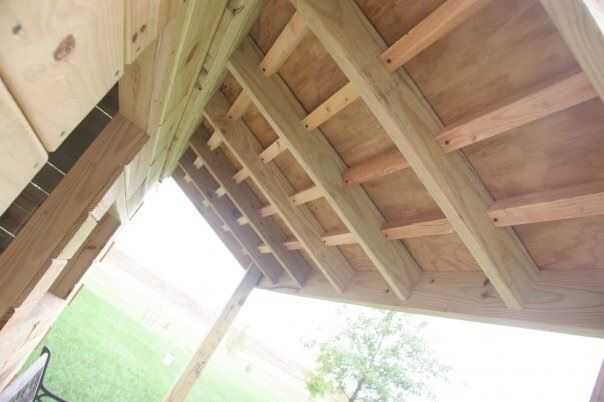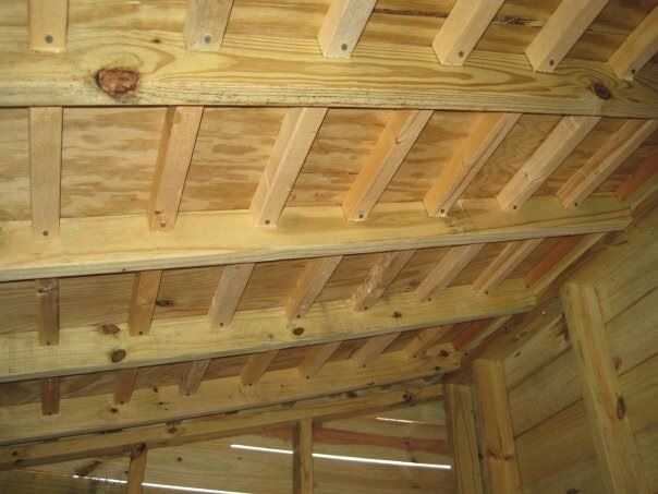 El problema que vimos con el clavado de las tejas es los clavos de techar deben ser lo suficientemente larga para sujetar las tejas en vientos... sino en la longitud correcta las puntas de los clavos vienen a través de la madera contrachapada. Para abordar esto, después de grapar el negro fieltro papel de techo a la parte superior de la azotea, pulsamos gustos de tiza en el techo para marcar donde los clavos irían, entonces transferido esa medida en la parte inferior de la cubierta. Individualmente medida y cortar tablas de 2 x 2 y atornillados a las vigas. Ahora, hemos protegido el Sheriff por el raspado de la cabeza de un clavo.