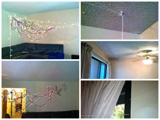 Luego hicimos un techo por las luces de Navidad zig-zag para crear un lugar para las hojas poner.
