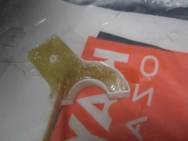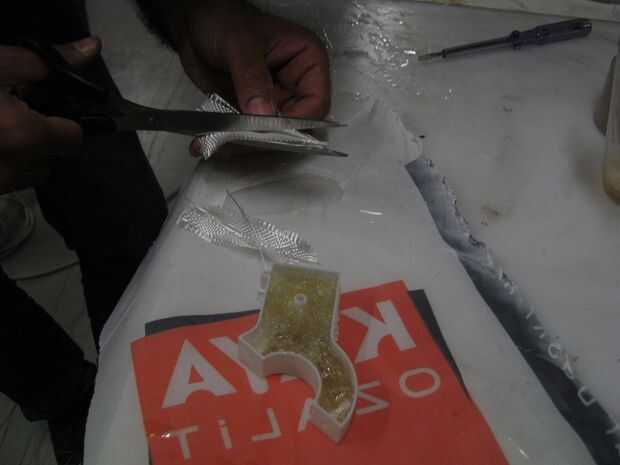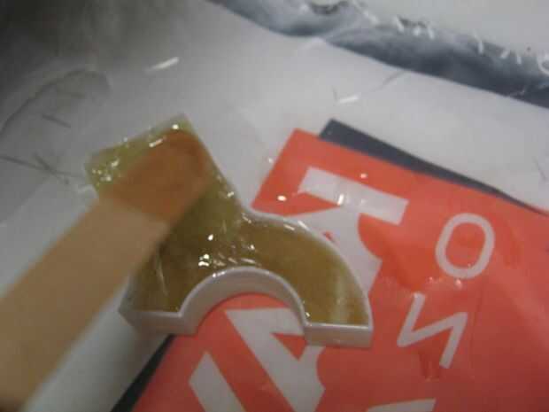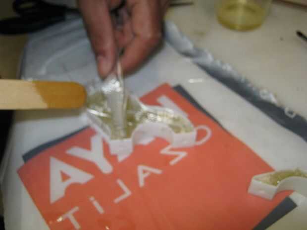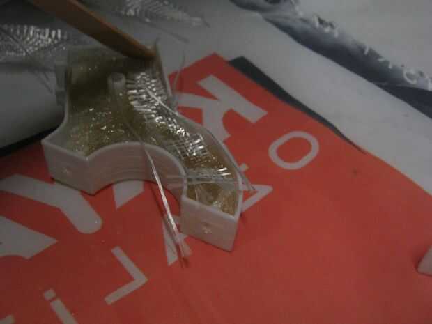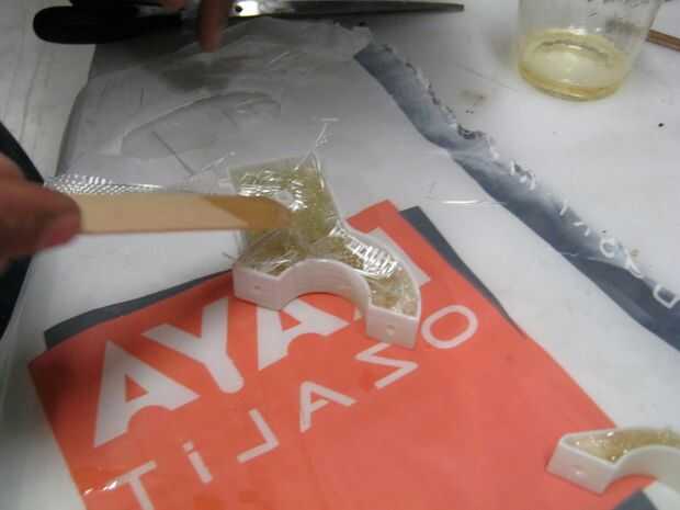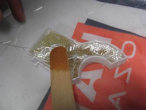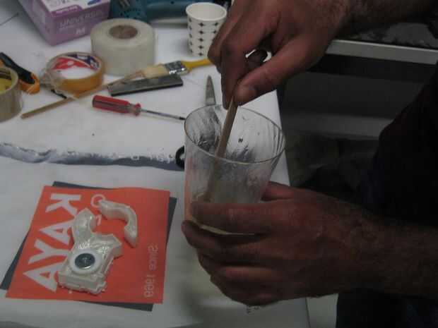 Primero destruir cierta cantidad de fibra de vidrio y relleno en ambas de las partes de hasta más de la mitad. Entonces comenzó a verter pequeñas gotas sobre ellos y aplicar un poco de presión para disfrutar de los.