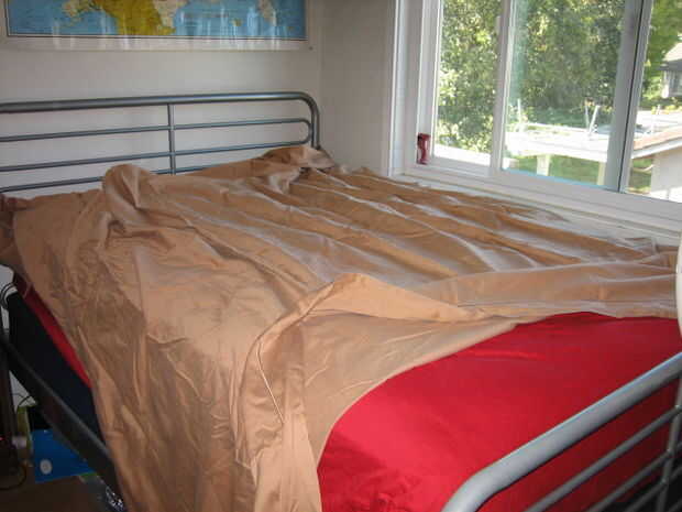 El primer paso es tomar la hoja y pone hacia fuera en su cama (o suelo). Luego configurar el ventilador a un lado de su cama.