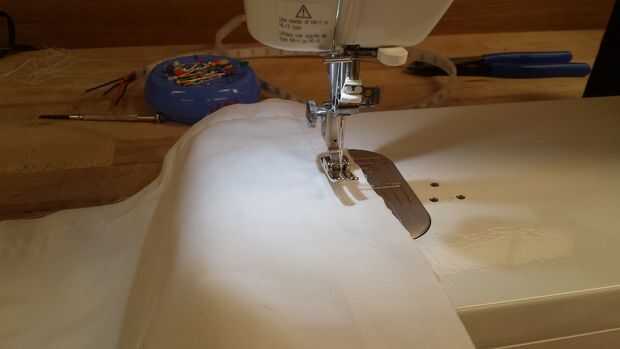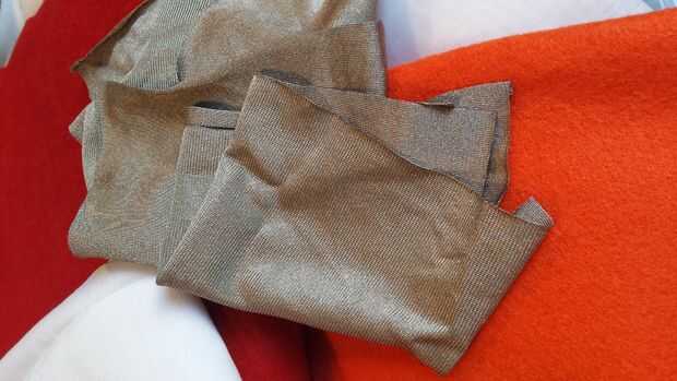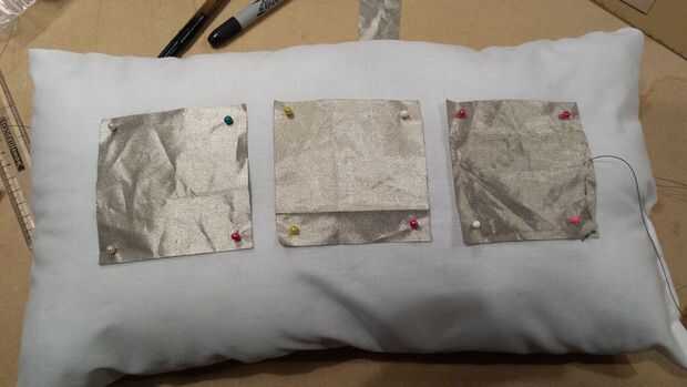 o cortar hacia fuera tela conductora y coser con puntada corriente con hilo conductor, conexión y mantener en su lugar.