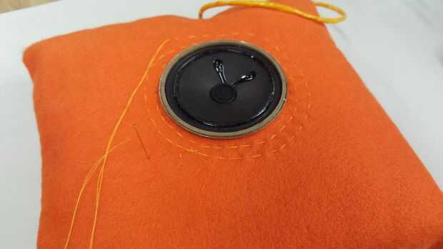 o pegar la bocina sobre la almohada base con la ayuda de retazo y pegamento