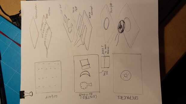 o los tres botones capacitivos se convierten en divertidas formas y símbolos que corresponden a la luz y el sonido (para eg. cortar una forma de tigre para el tema "selva")