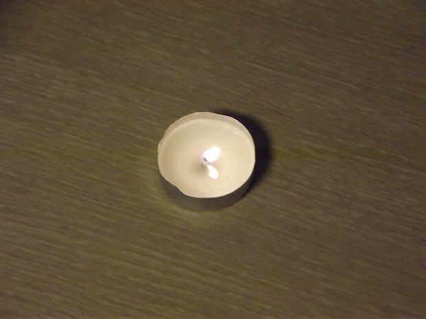 Usando un fósforo, calentar la cera en la vela de té hasta que se convierte en líquido. La forma más sencilla de hacerlo es justo a la luz de la vela y déjela arder durante unos minutos.