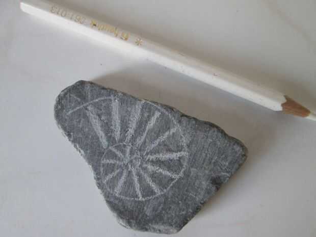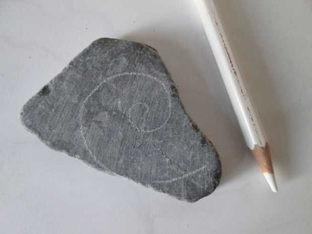 Dibujar una espiral en una piedra. No utiliza ningún tipo de presión. Para un mejor resultado natural colóquelo sobre un borde. Dibujar rayas blanco "zebra" en la forma de la concha