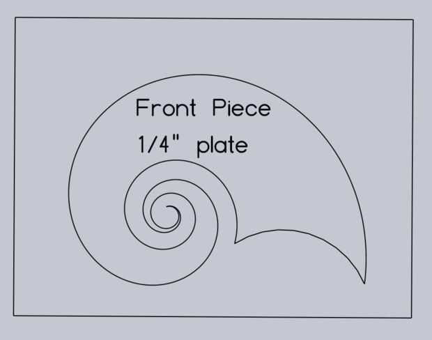 Añadir un rectángulo para la parte del contorno de su diseño hace que sobre la 1 ½" más grande que el diseño en la parte superior y los lados y 1" en la parte inferior. Guarde este plano de corte del CNC (guarda como un DXF). Esto se convertirá en la parte superior de 3 piezas que se cortan fuera de la ¼" de acero.