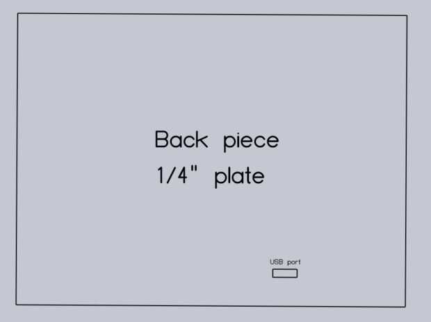 Añadir un rectángulo pequeño, apenas lo suficientemente grande para encajar el conector USB, al lado de la bolsa que está más alejado del contorno del diseño. Ahora elimine el esquema de diseño y bolsillo, y guardar este dibujo-it se convertirá en la tercera pieza de acero ¼".