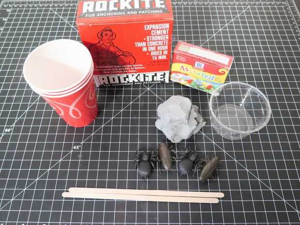 - Cosas a fosilizar (bichos de plástico funcionan bien)