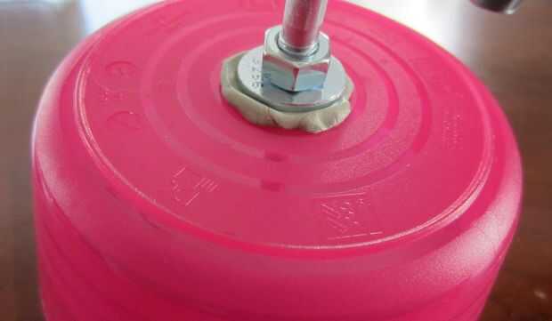 Inserte el gancho J a través del fondo de la taza, empujando la lavadora en el sellador.