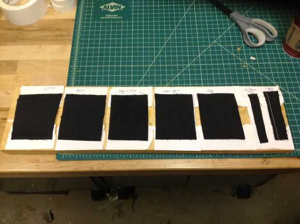 La prueba constaría de varias muestras de 2 "x 2" de Fosshape acabado atado a un tablero por cinta adhesiva. Varios tipos de pegamento se puede aplicar el mismo tipo de tela sujetarse a la cola. El punto de la prueba sería poner a prueba la adherencia de la tela a la Fosshape. Entonces compararse con los resultados con una escala de 1 a 5 con 5 siendo la mejor.