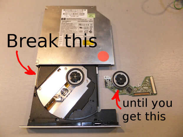 * obviamente roto CD/DVD/Bluray unidad, preferiblemente desde un portátil aunque escritorio va a hacer demasiado