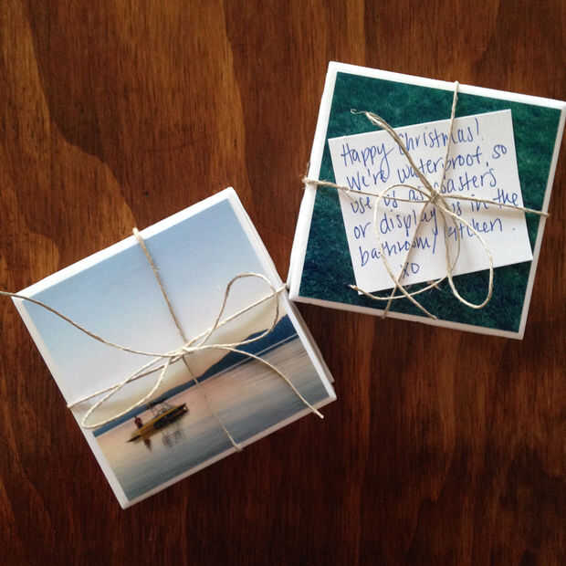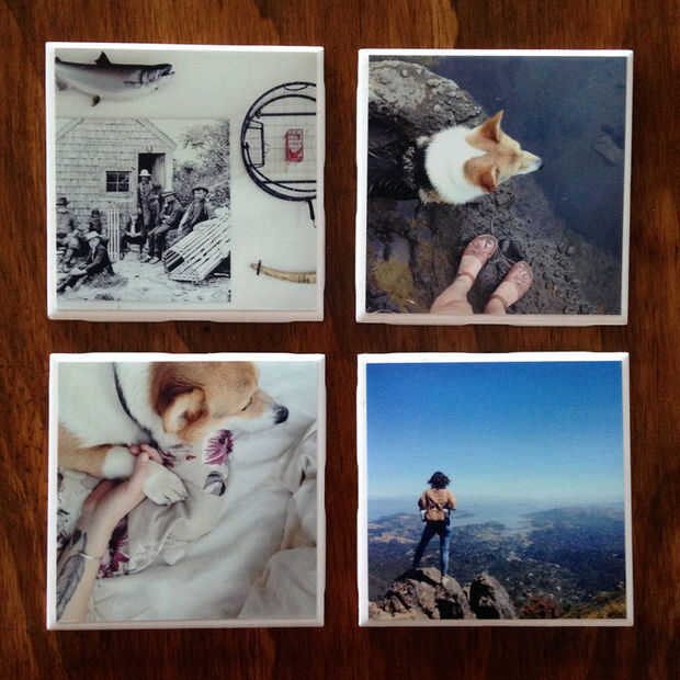 Luego utiliza algunas baldosas cerámicas blancas básicas (20¢ cada uno) y pintadas de una capa de Mod Podge derecha en la parte Brillante de la baldosa y puso mi foto plana. Deje secar por aproximadamente una hora, luego hice otra capa de Mod Podge justo en la parte superior de la foto (más claro), seguido por tres capas de barniz transparente.
