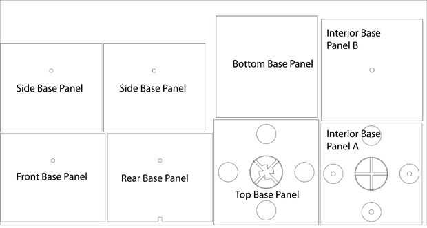 El archivo smoke.dxf contiene todas las piezas de la caja base, anotado a continuación y debe cortar de acrílico color humo