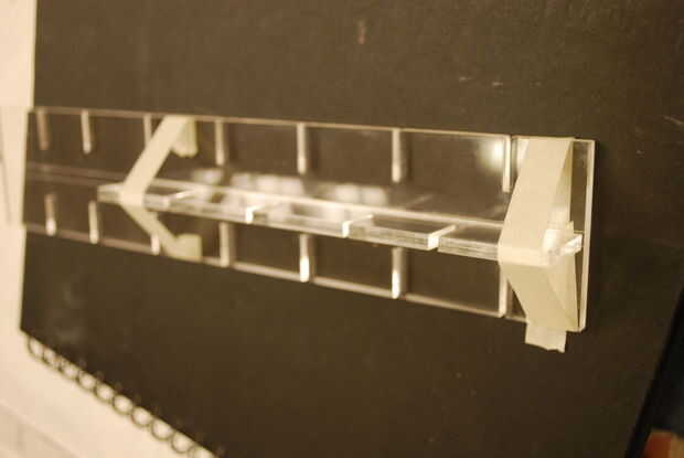 - Usar a los últimos 8 espaciadores Base (esta vez la más grande unos, que necesitan ser pegadas en ángulo recto, entonces pegado a las esquinas de la caja base, bajo Interior Base Panel B.