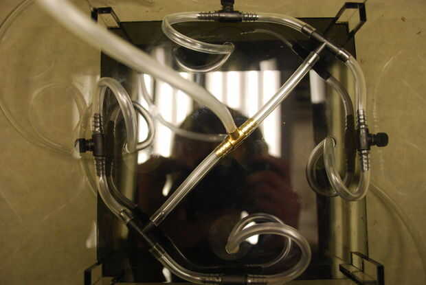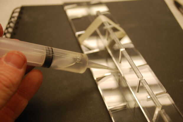 La mayoría del biorreactor se ensambla utilizando cloruro de metileno, una sustancia muy tóxica que se utiliza en la producción comercial de acrílico. Siempre se debe aplicar con una jeringa de plástico , y probablemente debería usar guantes y trabaje en un área bien ventilado