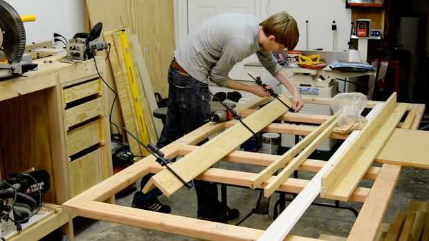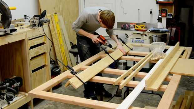 El primer paso es cortar las tablas a la longitud deseada y cortar sus galleta ranuras en la 2 el reborde frontal de 1 × 2 y 1 × 4. Si sólo usas un Kreg Jig perforar su bolsillo en la parte inferior 1 × 4 para fijar la parte delantera y trasera contabilidad.