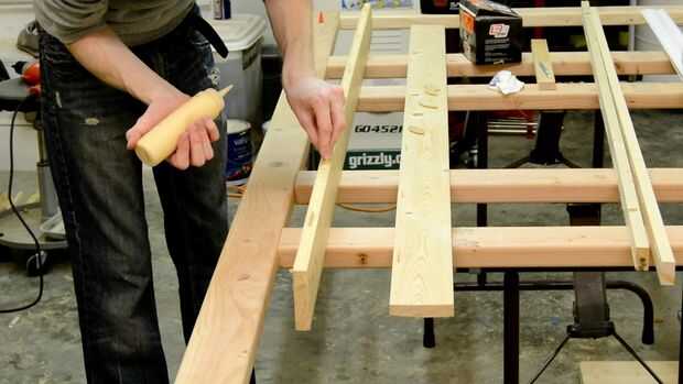 Una vez que los agujeros son perforados puede abrazadera de las Naciones Unidas y desarmar todo para pegar. Después de aplica el pegamento en la parte posterior e inferior volverlos a montar junto con las galletas y conduce sus dos tornillos en las juntas correspondientes. Se dará cuenta de que esto es que usando galletas viene realmente bien porque ayudan a mantener todo junto para usted.