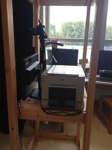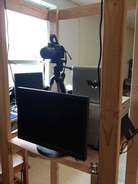 Ya tenía la cámara, monitor, ordenador portátil, trípode, hombre usb, tira de la energía y todas las cuerdas que lo acompaña. Había enganchado el powermate y la impresora en el hombre de la usb y había conectado al hombre usb en uno de los puertos usb en mi laptop. La cámara obtiene conectada directamente a otro puerto usb de mi laptop. El monitor externo fue conectado en el puerto mini pantalla de mi laptop y refleja mi pantalla para que lo que ven en la cabina de la foto es exactamente lo que está configurado en la pantalla. Las luces, impresora, laptop y cables de alimentación del monitor están conectados a la regleta, que está enchufada a la pared.