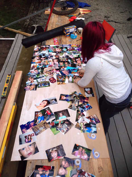 Comenzar colocando fotos y asegúrelo con cinta scotch. Usted quiere ser capaz de mover que las fotos alrededor de if es necesario añadir tan sólo un pedazo de cinta adhesiva en la parte posterior de cada foto.