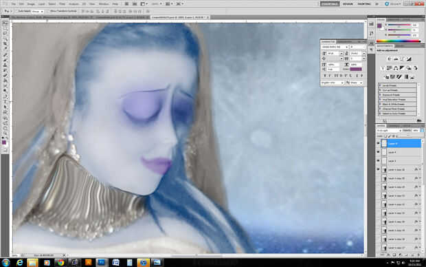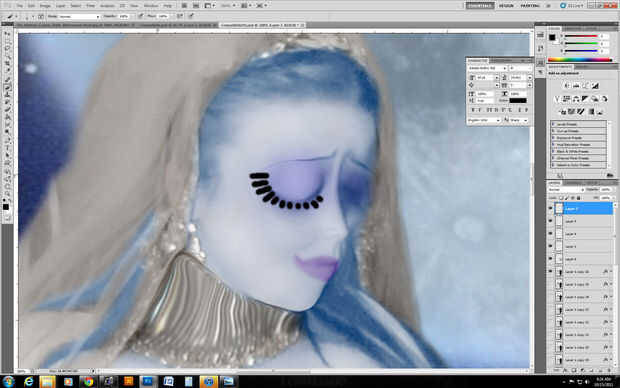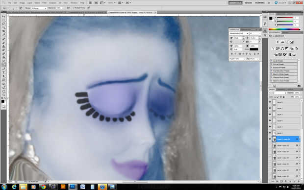 Para mis ojos, puse algunos púrpura en su propia capa y he cambiado a una opacidad inferior y lo mismo con los labios, en su propia capa, con su propio color.