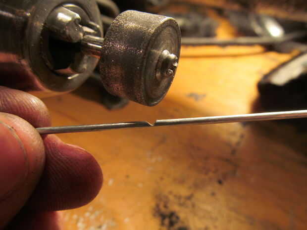 Problemas. Para obtener una curva pronunciada en cable usted tiene que presentar una muesca. Usé mi disco de diamante en una prensa del taladro. Estas herramientas no son específicos para un comercio o difíciles de conseguir pero los considero especial. Por lo que tendría que modificar el diseño.