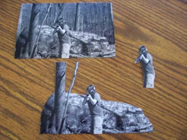 En este paso, debe primero cortar el primer plano de la primera foto, y luego cortar el primero plano y el punto medio en la segunda foto y dejar solo la última foto (fondo).