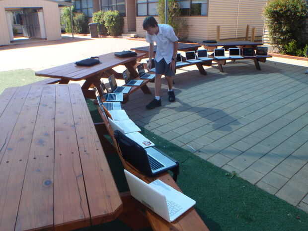 También pensé que las computadoras portátiles eran demasiado lejos aparte por lo que hemos hecho un círculo de 1/2 y juntar mucho más cerca las computadoras portátiles.