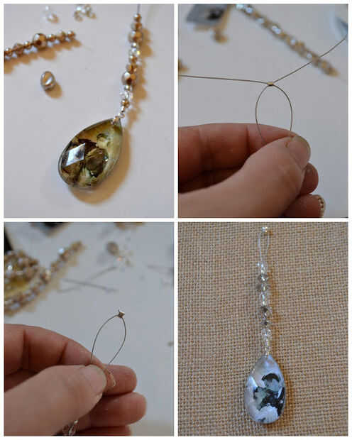 • Pase un 9"-10" pedazo de alambre a través de la fianza. Asegúrelo en su lugar roscando una pequeña cantidad a través de ambos extremos del alambre (longitud dependerá de cuánto tiempo desea que el adorno final a ser).