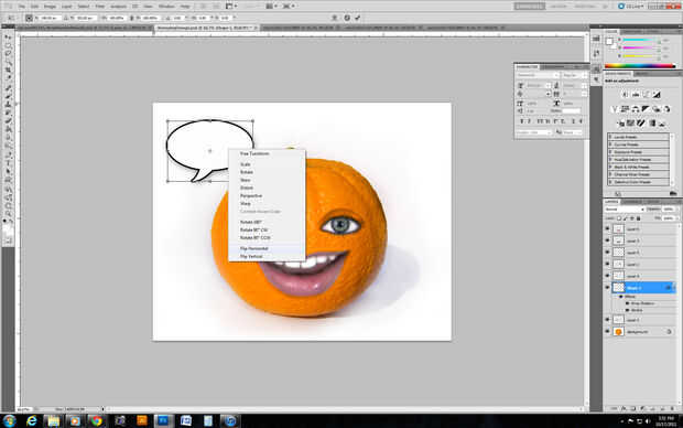 A continuación, seleccione la herramienta texto en el lado izquierdo, escriba su línea, luego CONTROL + T para transformar el tamaño desea e incluso utilizar los ángulos de giro y el ángulo de su texto para adaptarse correctamente a su burbuja. Pulse enter para aceptar la ubicación después de transformar.