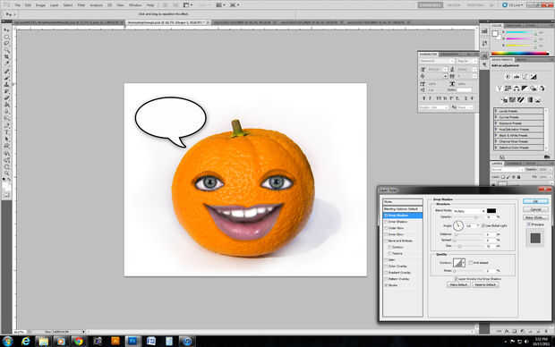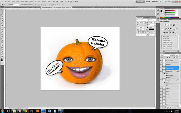 Fui a la capa con la burbuja, haga clic en la derecha, RASTERIZAR la capa, luego abajo en la parte inferior del menú de capas, elegí el botón FX crazy para efectos. Añadí una sombra y un golpe para asegurarse de que apareció. Jugar con la configuración para obtener una previsualización de lo que gustaría ver.