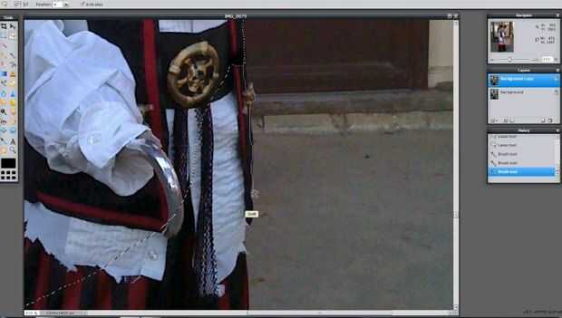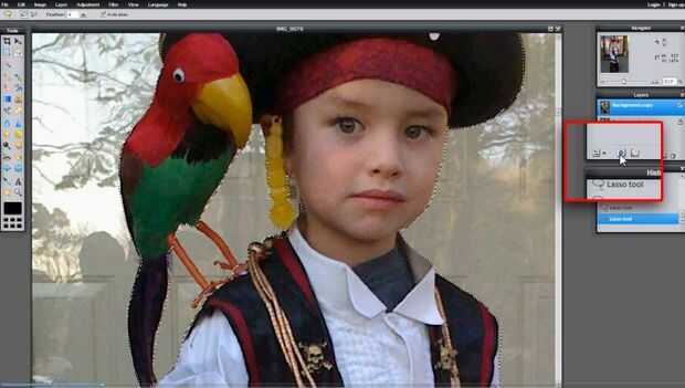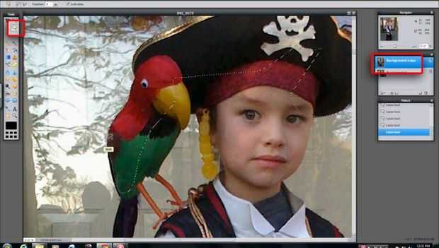 La capa de fondo tenía una cerradura, por lo que acaba de hacer una copia de la capa para empezar a trabajar en él. Quiero cortar mi hijo fuera de la imagen y colocarlo en la cubierta de un barco. Mi primer trabajo fue empezar a cortar o enmascarar, mi método preferido. Lo que sé hay básicamente dos maneras de conseguir librado de los píxeles no deseados de una imagen. Uno es simplemente utilizar la herramienta Borrador y perderlos para siempre o está utilizando una máscara de capa a.k.a. alfa para ocultarlas. La razón que me gusta el segundo enfoque es no destructivo. Si más adelante decide que desea alguna parte detrás, para editar la máscara de capa para traer de vuelta esa parte a la vista.