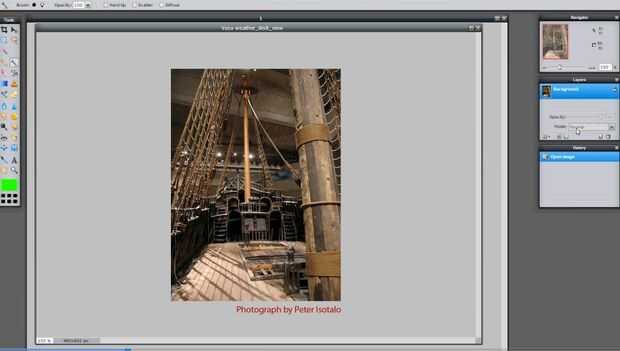 Esta foto de una cubierta de la nave fue tomada con un lente de gran angular que ha enfatizado la perspectiva y creó cierta distorsión de la lente. Una vez más a partir de hacer una copia de mi capa de fondo que voy a tratar de enderezar un poco las cosas. Clic en "Editar" en la barra de menú y desplazarse hasta falsear la libre... He utilizado esta herramienta para ensanchar la parte superior de la imagen para reducir la distorsión. Admito no es perfecto pero en mi opinión ayuda.