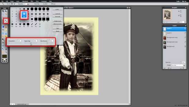 puede que necesite ajustar el tamaño y la suavidad de su cepillo. Repita este paso un par de tiempo para obtener puntos de diferente tamaño alrededor de su imagen.