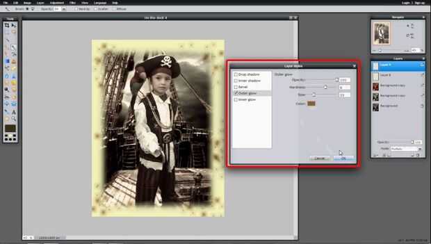3) abierto estilo de la capa de la caja (3 º icono de la izquierda en la parte inferior de la ventana de capas) y agregue algunos marrón "resplandor exterior" ajusta al gusto.