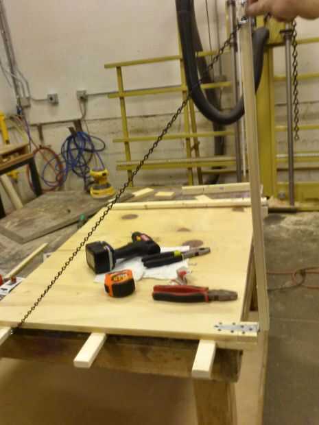 Yo también montar los tornillos y la cadena que apoye el estante cuando estaba abajo.
