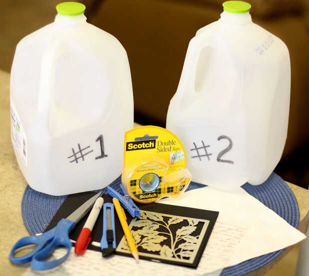 - 2 vacíe el galón de leche de plástico, agua u otras jarras blanco mate
