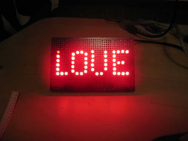 Todos los LEDs en una columna está conectado en serie y todas las columnas en paralelo. Puse tantas resistencias en paralelo para cada columna como LEDs. Pero no pienso en el calentamiento de las resistencias para la Junta tipo de cálido y agradable. No veo esto como un error, sino más bien como una característica... :-)