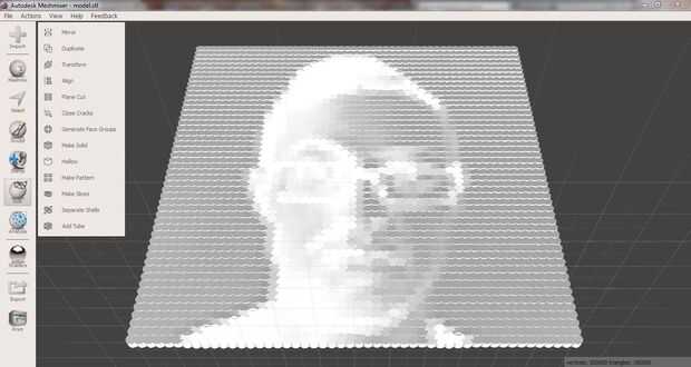 Dependiendo de qué impresora está utilizando y cómo corta un archivo, puede haber algunos pasos adicionales para imprimir. El archivo exportado se compone de todos los polígonos extruidos como objetos separados (900 si tu imagen es 30 x 30). Si está utilizando una impresora FDM Makerbot como de Reprap, el software de corte tendrá un tiempo difícil averiguar cómo crear trazados. Usted necesitará a cada objeto en un objeto sólido que no es tarea fácil para la mayoría del software.