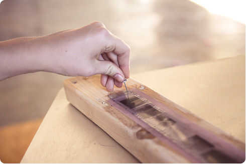Consigue tu negativo colocado correctamente, asegúrese de que usted ponga el lado brillante hacia abajo para no mancharlo.