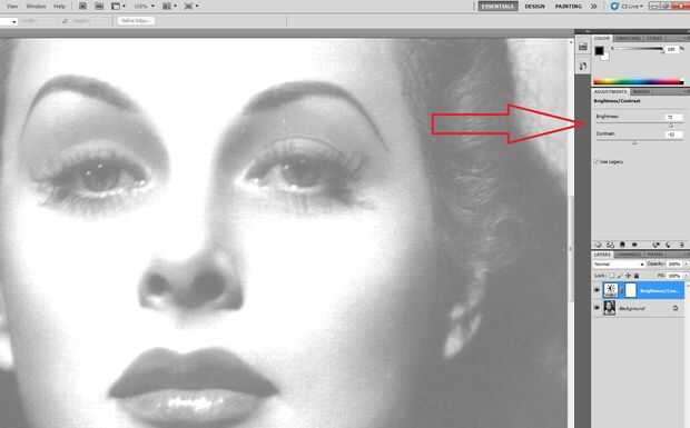 ajustes de la derecha. La configuración de más 72 brillo y contraste 12 negativos trabajaban para esta imagen. Asegúrese de seleccionar la función de