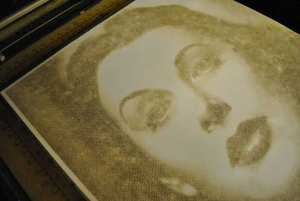 TechShopde 60 vatios. Puede utilizarse para hacer cortes de vector y para grabado. Puesto que estos miles de puntos tomaría demasiado largos para cortar como vectores, va ser grabado les. Ya que estoy utilizando cartulina para mi plantilla, puedo grabar a través con la velocidad de trama en el 70 y el poder a los 90. Otros materiales tienen diferentes requerimientos y puede ser necesario cortar la plantilla como un vector. Los pequeños círculos.....