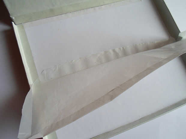 En primer lugar, pegar el lado más largo del plástico en el centro de la caja del marco.