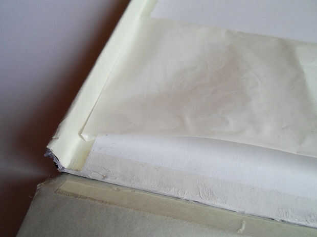 Doble el plástico hacia arriba e intentar pegar los lados cortos tratando de mantener en el interior. De esta manera sean invisibles.