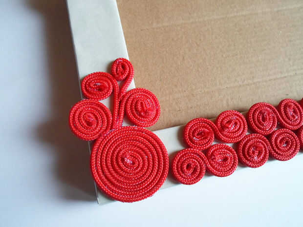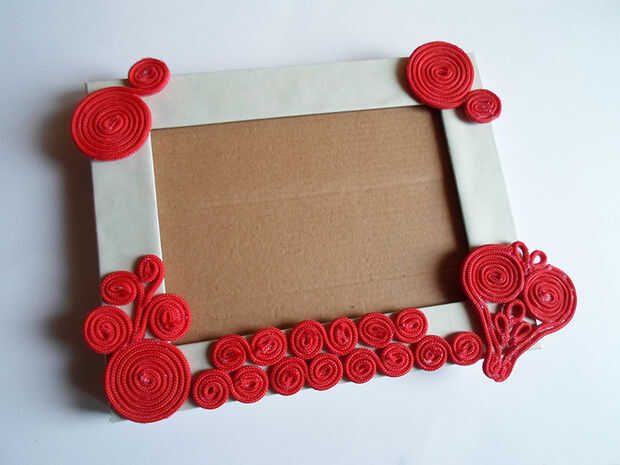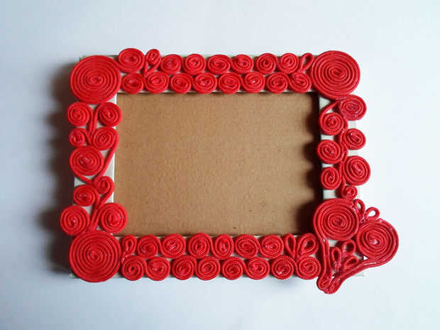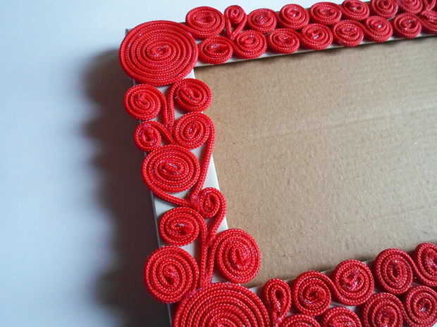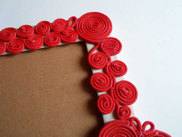 Cuando usted está seguro, utilice pegamento caliente para pegar los remolinos en el marco.
