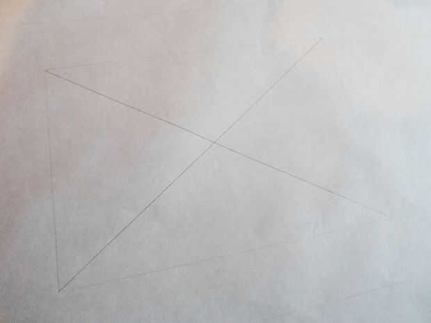 A partir del centro, hacer 4 cortes diagonales hasta llegar a los bordes de ese rectángulo más pequeño.