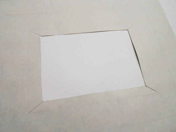 Ahora corte ese rectángulo central Asegúrese de dejar alrededor de 1cm (0,39 pulgadas) libre todo.
