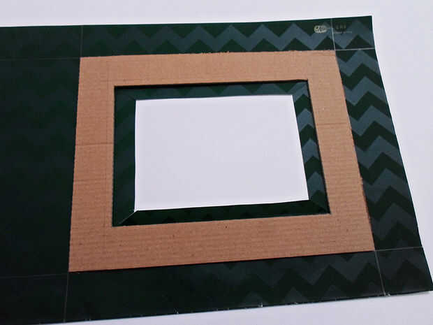 Pegar el marco de cartón en la parte posterior del papel asegurándose de seguir las líneas que trazó.