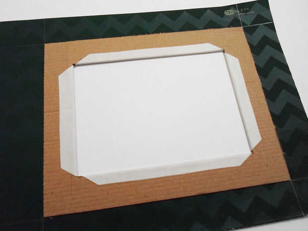 Por último, doblar los bordes 1cm que no cortar antes de pegar a los lados interiores del marco.