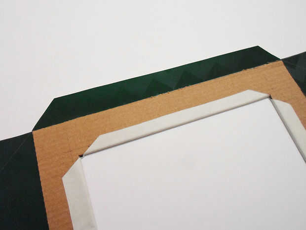 A partir de ahora desde el otro lado, hacer un corte recto siguiendo la frontera del lado largo para que obtienes una tira separada de papel en la parte superior del marco.